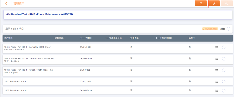 这里将显示与维保计划有着相同计划工作类型的资产列表。您可以从列表中选择或者搜索资产。