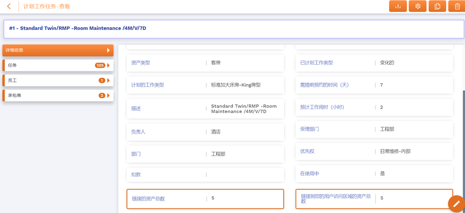 选择您希望编辑或链接资产的维保计划,系统将打开计划工作维保任务-查看窗口。