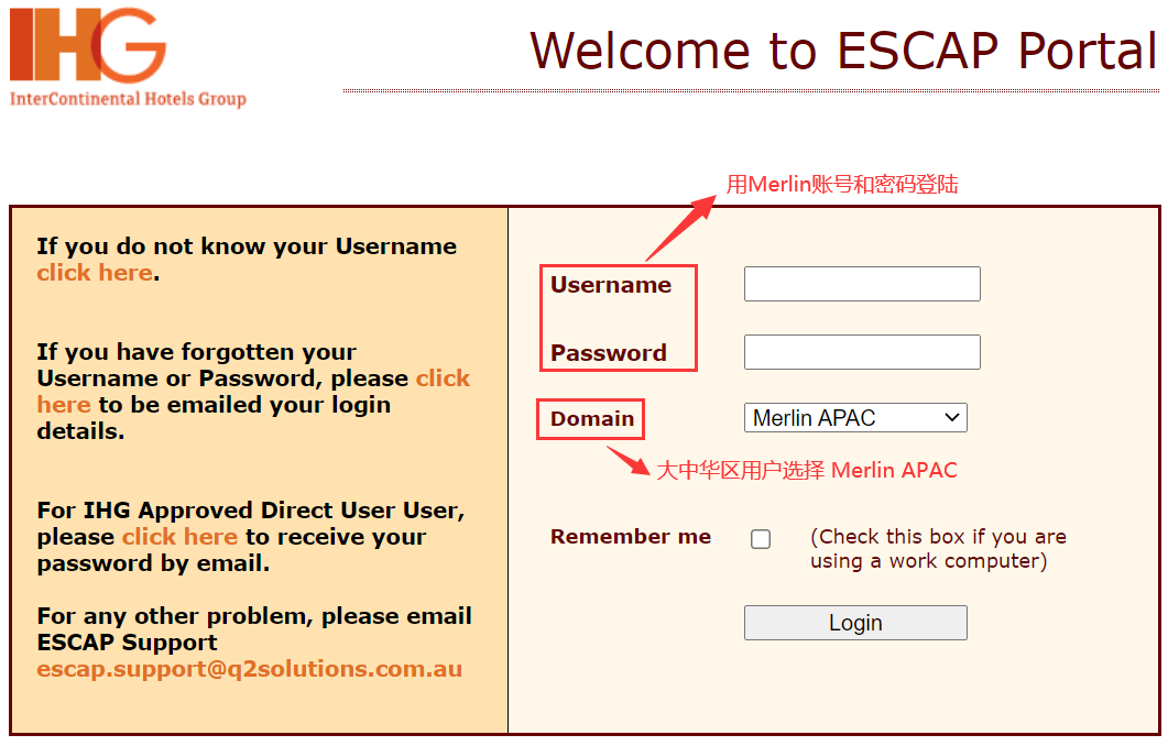 2.1 用Merlin账号和密码登陆ESCAP Portal 门户网站: