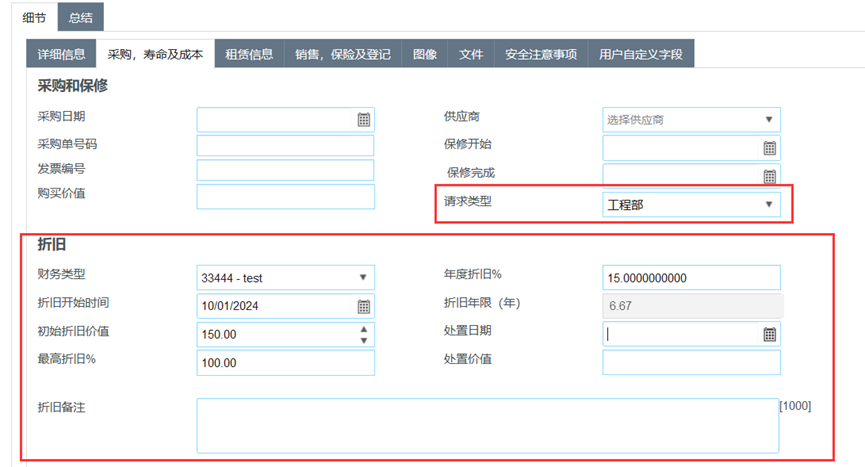 当用户拥有资产“编辑”或更高权限时,可以录入折旧数据。