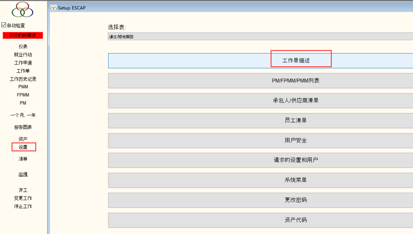 点击“设置”>”工作单描述”