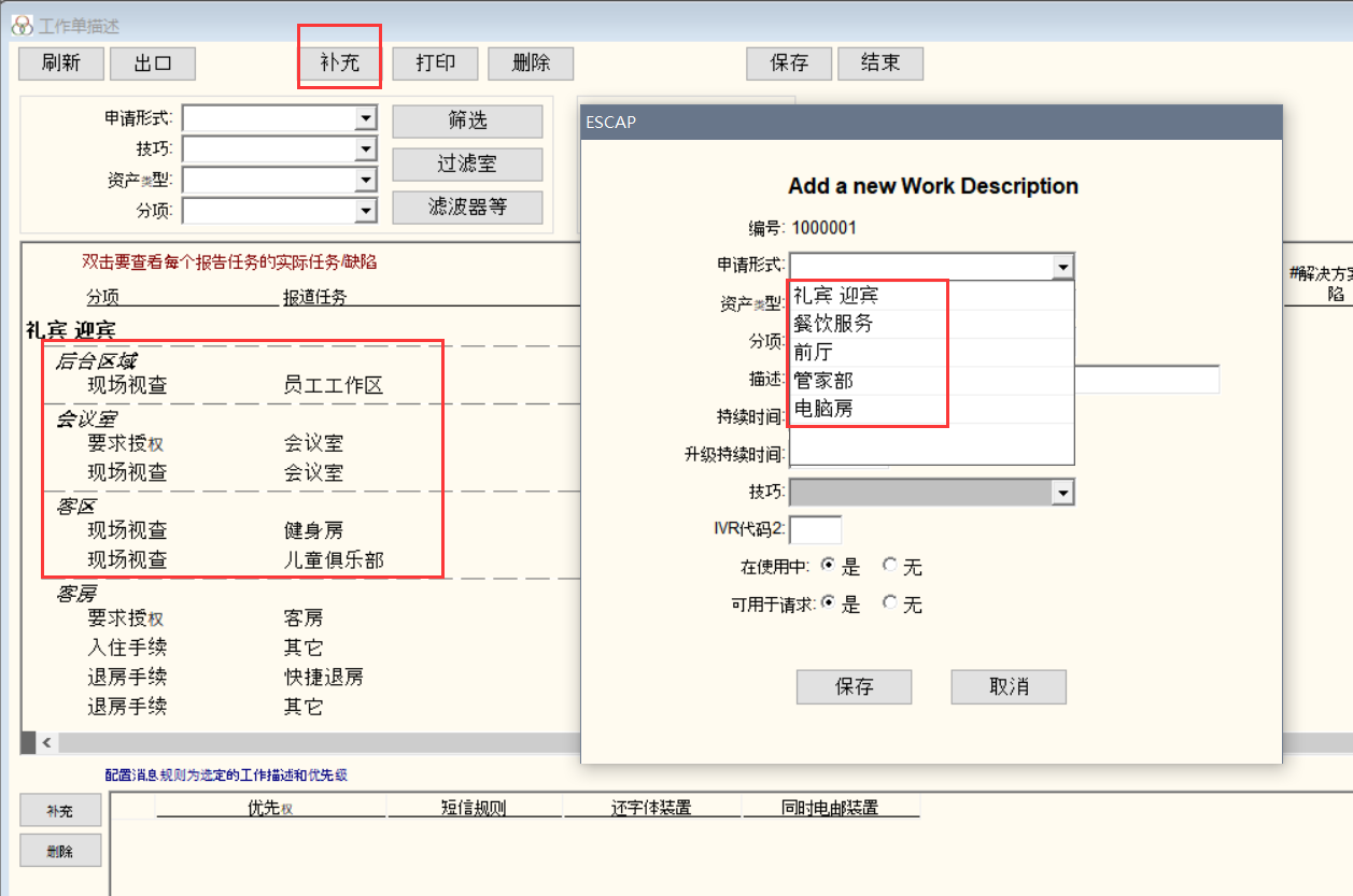 除了工程部以外,其他部门可以在系统中添加工作单描述(工作单内容)。所以如果酒店想要添加自己的语言,比如泰语、越南语等等,是可以的。添加成功后的工作单内容会显示在工作申请提交界面。