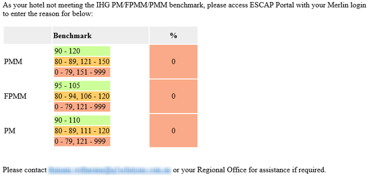 3.1 如果任意一项工作未达到绿色基准值,系统会自动发送提醒邮件至相应酒店的Merlin用户邮箱地址。