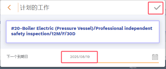 输入下一个到期日(即维保任务开始的日期)并击应用图标,完成设置