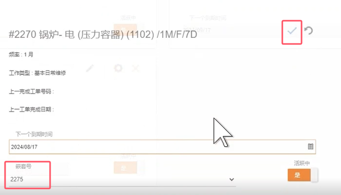 为了避免这种情况,最好的方法是将每1个月的检查嵌套到每3个月的检查中,并将每3个月的检查嵌套到每12个月的检查中。当他们同时到期时,系统只会生成其中一个维保任务的工作单。