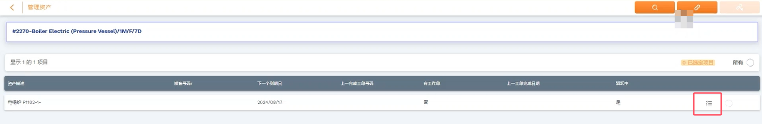 2 从列表中,单击链接了多个维保任务的资产