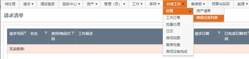1 打开 计划工作> 设置> 维保任务列表