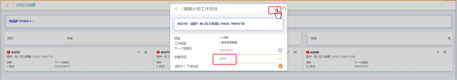 4 选择要嵌套的维保任务号码,保存即可。