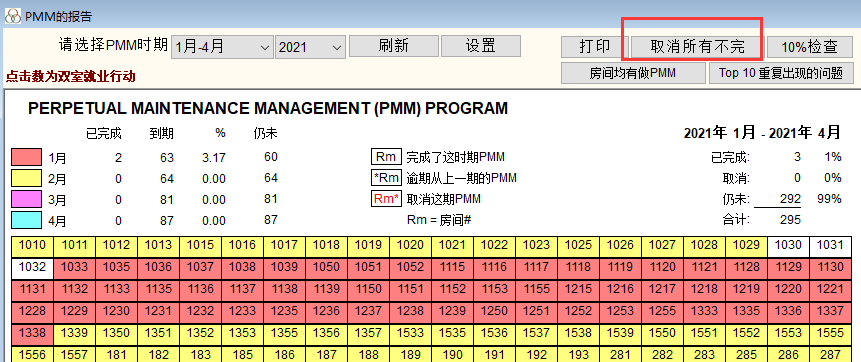注意:如果本季度还有未完成的PMM工作单,您需要点击“取消所有不完”按钮将这些单子取消,才可以创建新一个季度的PMM日历。创建新的PMM日历步骤: