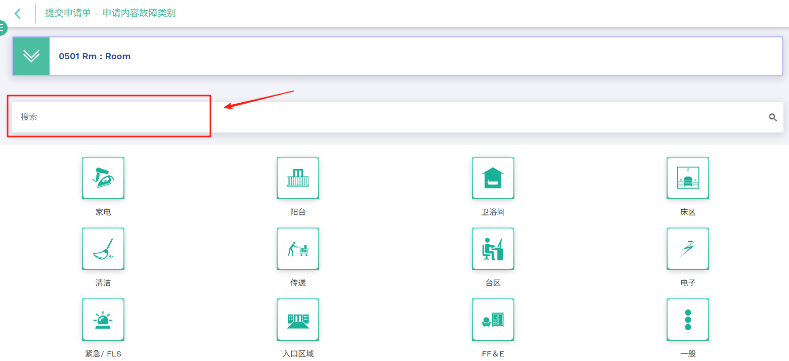 在图标导航界面(可通过用户偏好设置调整),您现在可以直接在「请求/故障类别」页面进行搜索。这意味着当您已明确申请单问题时,只需输入关键词即可快速定位请求描述,并创建新工单。