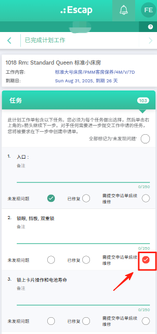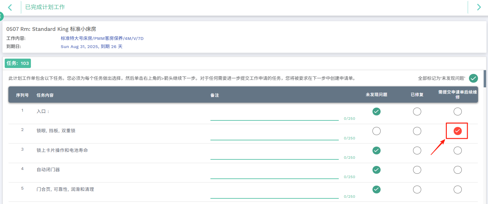 当计划工作客房维保任务中选择"需提交申请单后续维修"选项时(电脑端与手机端均可),现可更便捷地新建申请单以便进行分配和处理。