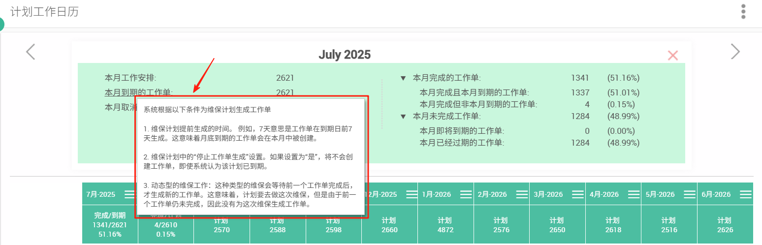 该月到期未完成的计划工作单数量