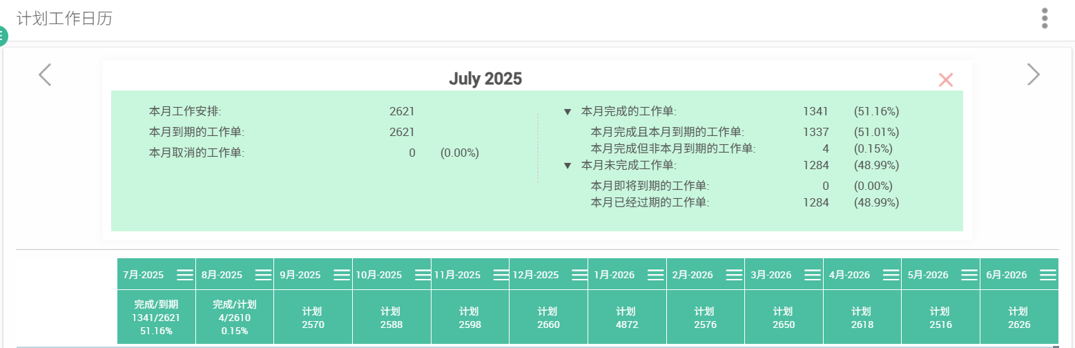 该月已完成的计划工作单数量