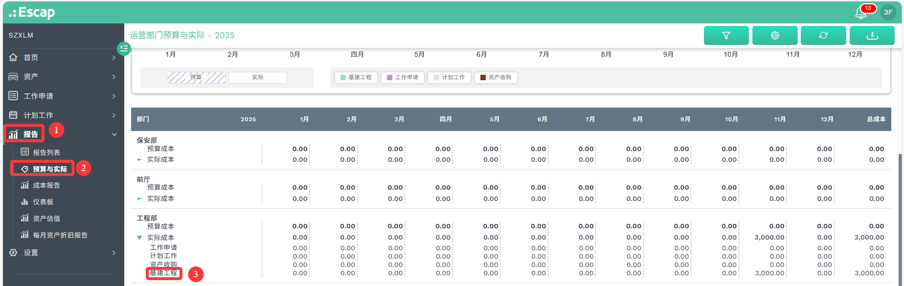 预算与实际的报告中新增了“基建工程”项目