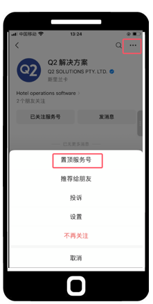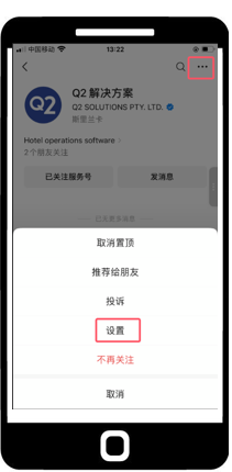 第3步:(推荐)置顶【Q2解决方案】 服务号,并关闭‘消息免打扰’选项