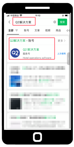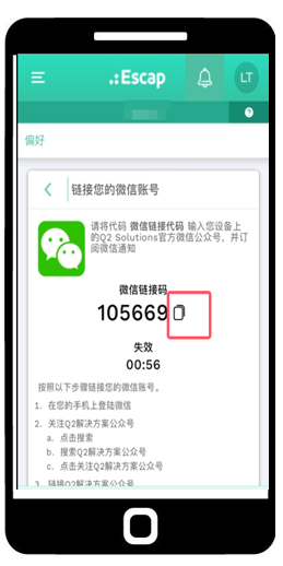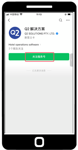 第2步:打开微信,关注服务号「Q2解决方案」 并发送链接码