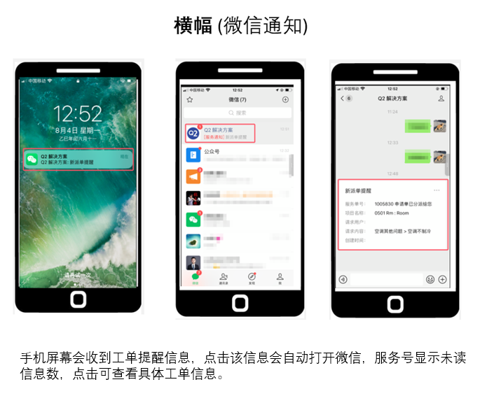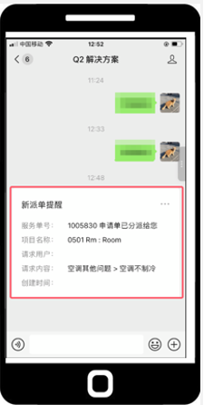 实时工单推送:系统自动将工单信息推送至绑定微信,消除人工通知环节