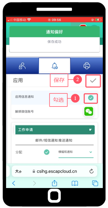 3.6 确保打开 ‘启用信息通知’ 选项并保存,才能成功接收微信通知。
