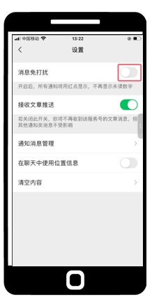 关闭‘消息免打扰’选项,手机屏幕可显示微信工单提醒。
